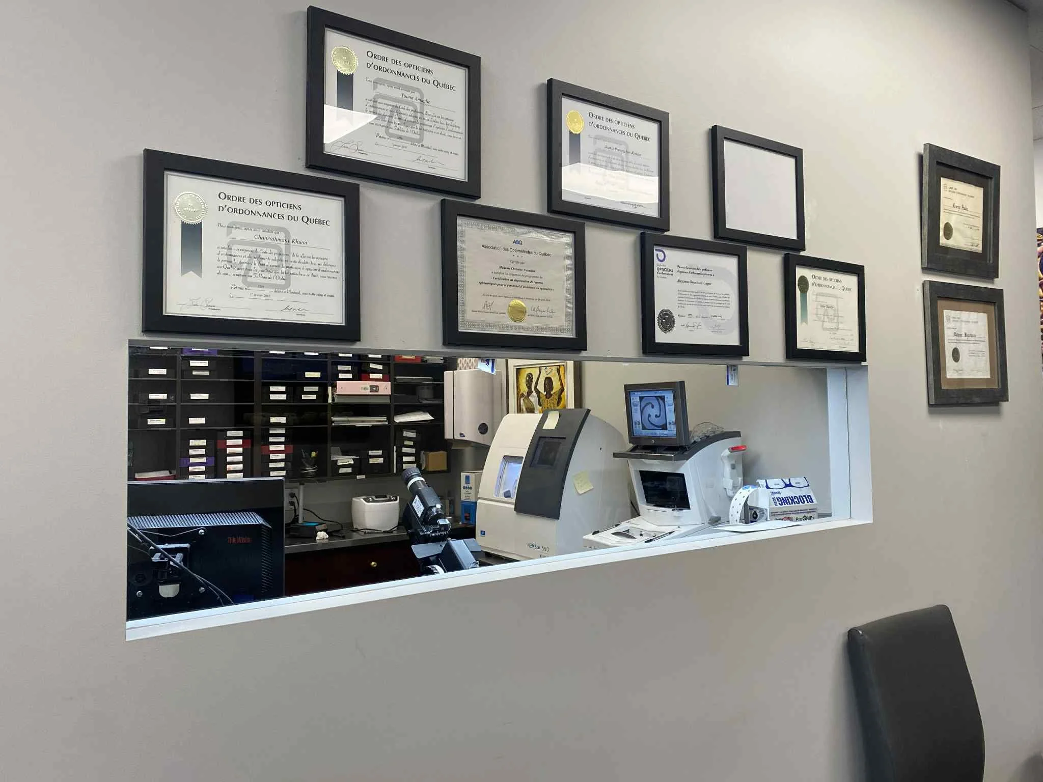 Notre clinique possède un laboratoire de taillage sur place et un grand inventaire de lentilles de prescription. Selon votre type de vision, il est possible de vous livrer vos nouvelles lunettes ou de retailler vos verres en 1 heure!